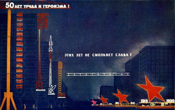 7 ноября для СССР всегда было главным государственным праздником и отмечалось с размахом, особенно в юбилейные годы. Но самой яркой годовщиной, запомнившейся тематической продуманностью, масштабом, комплексностью, необычными художественными решениями был, без сомнения, полувековой юбилей, отмечавшийся в 1967 г. по всему Союзу.