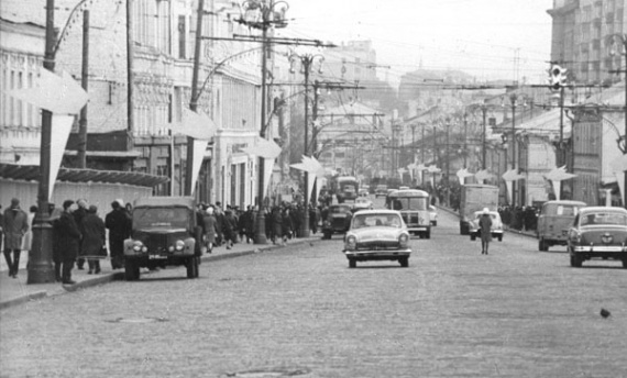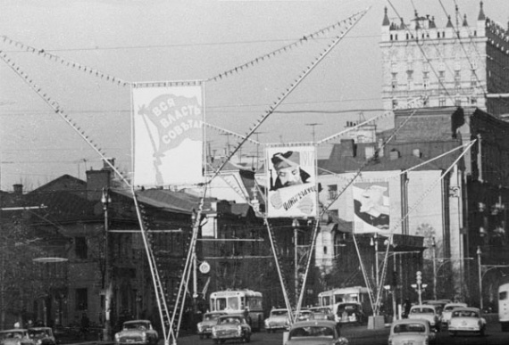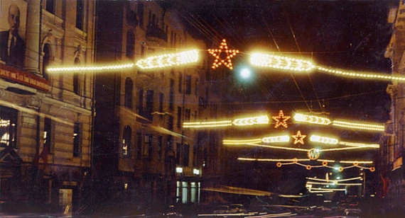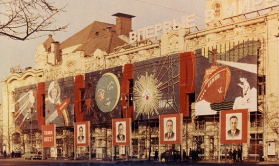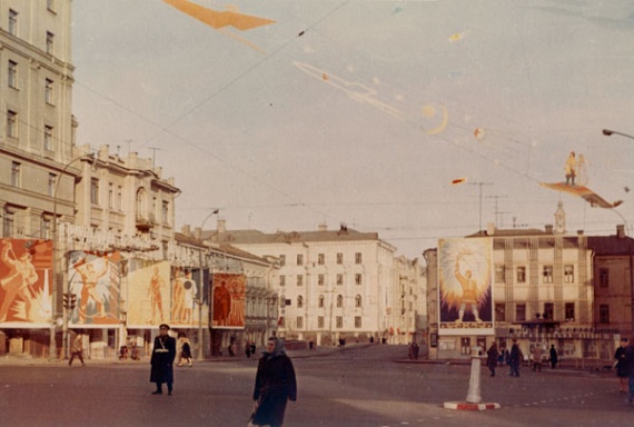 На улице Чернышевского сияли силуэты ракеты и первого искусственного спутника Земли рядом со сказочным ковром-самолетом. Лозунги возвещали: «Трудом своим чудеса творим» и «Мы рождены, чтоб сказку сделать былью».