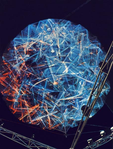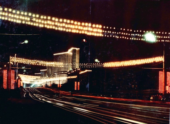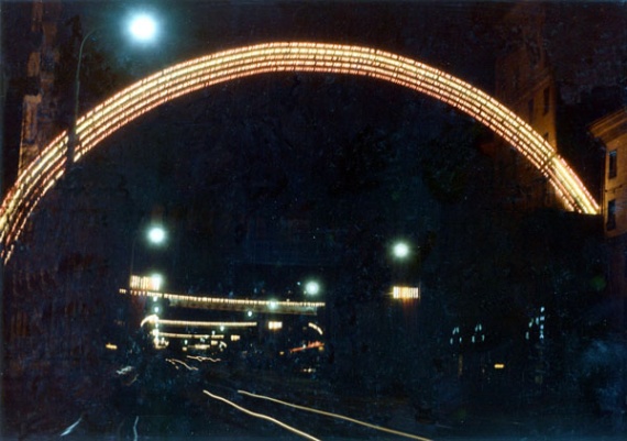 Карнизы домов и строительные краны были украшены бегущими и пульсирующими огнями. Все свето-динамические композиции создавались с тем расчетом, что бы они хорошо воспринимались как днем с выключенным светом, так и ночью, когда включалась иллюминация.