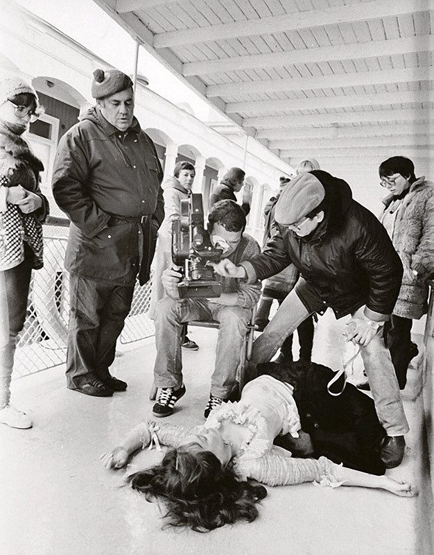 Ролан Быков на съёмках фильма «Приключения Буратино». 1976