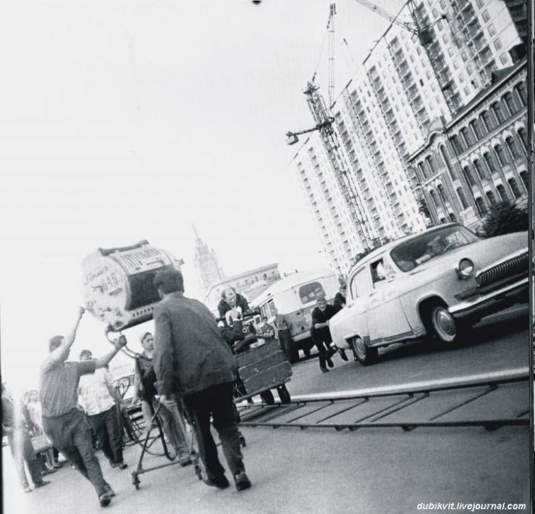 неудобная работа оператора и режиссера в пальто либо в костюме при СССР, когда не было в продаже ветровка либо куртка пуховик