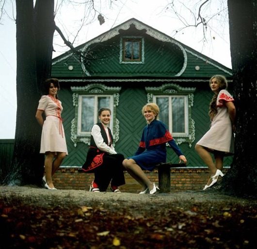 Одежда, которой торговали фарцовщики, стоила довольна дорого, поэтому многие по-прежнему предпочитали обходиться своими силами и шить вещи на дому. Один из популярных в 1970-е трендов – русский стиль. Девушки, отдававшие ему предпочтение, носили трикотажные юбки и платья средней длины, светлые рубашки и блузки с отложными воротничками, пиджаки в клетку. Несмотря на название, эта тенденция также была «подсмотрена» в западных журналах – в этом признавалась одна из самых известных манекенщиц того времени Марина Блиновская.