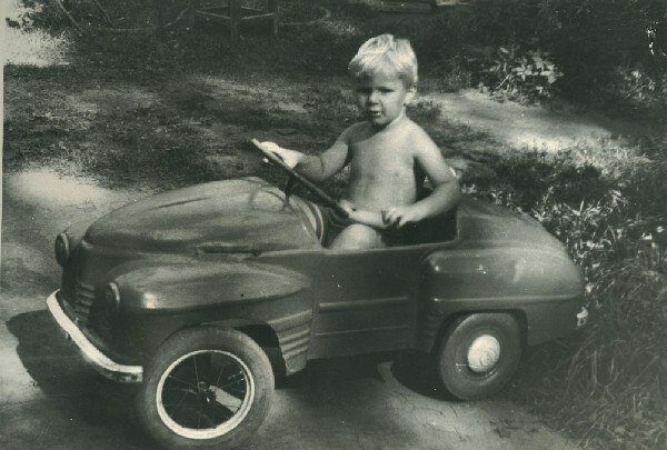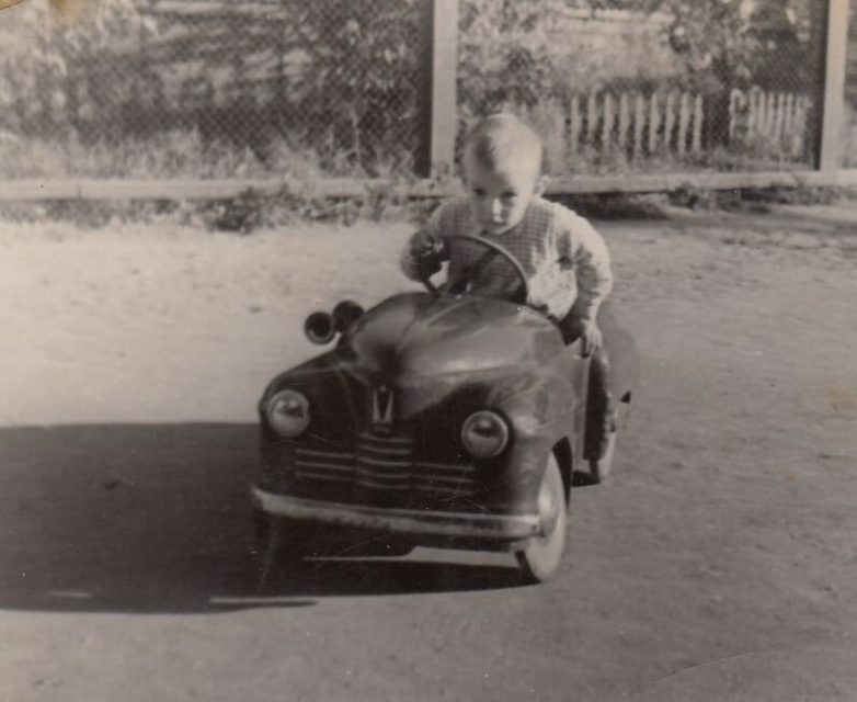 У меня был такой «Москвич». Мне в четыре годика родители подарили. У нас к счастью было где кататься. Мы жили на окраине города и район наш окружен со всех сторон лесом. И я с бабушкой или мамой или с папой уходили в лес, и я каталась по асфальтовым дорожкам, проложенных в лесу.