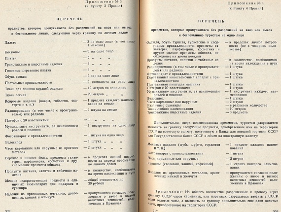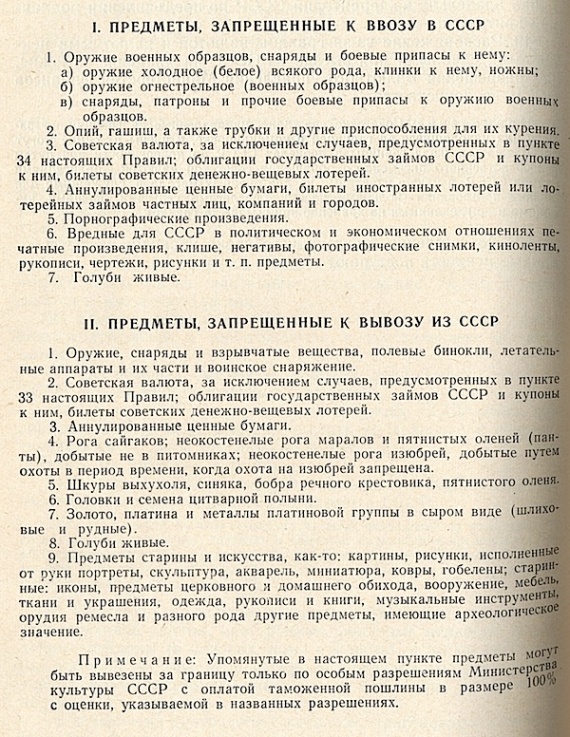 Предметы, запрещённые к ввозу-вывозу из Союза