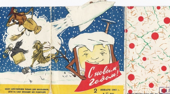 Давайте посмотрим как выглядели пригласительные билеты на новогодние ёлки для московской детворы конца 50-х и 60-х годов.