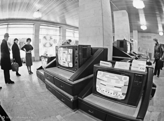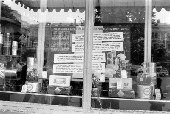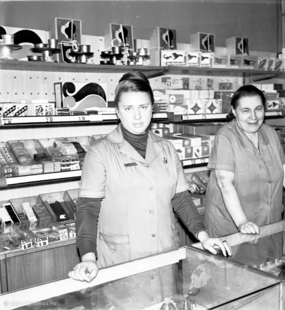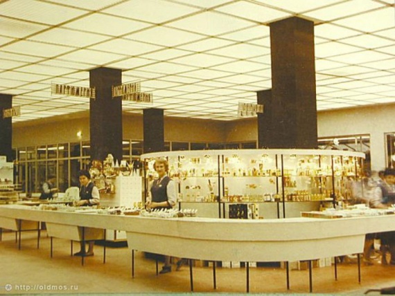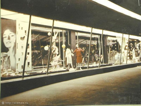Витрина и прилавки универмага Москва 70-х годов.