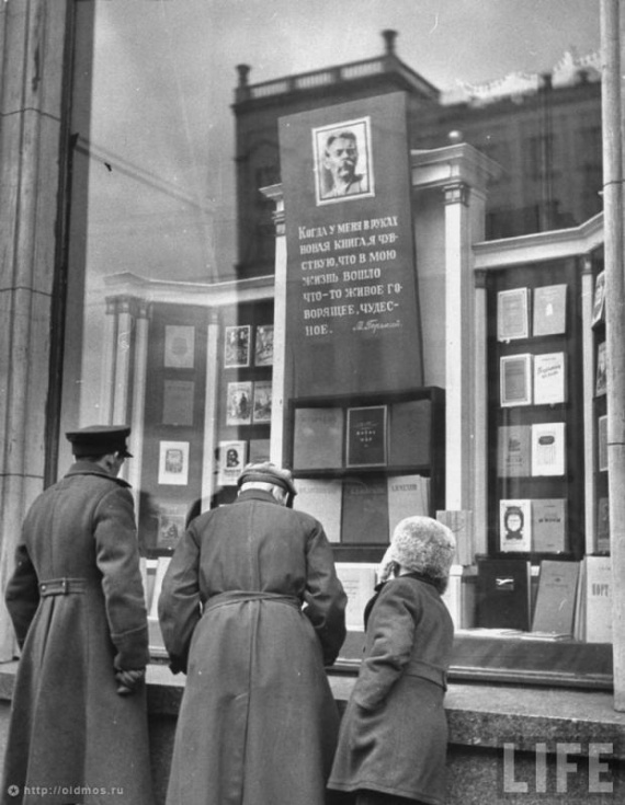 У витрины книжного магазина «Москва»