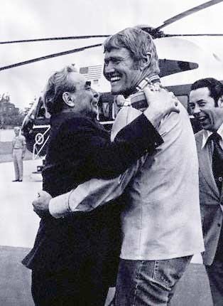Леонид Ильич наверное любил смотреть вестерны. Вон с какой душевной теплотой обнимается с Чаком Коннерсом – актёром, игравшим лихих ковбоев в голливудских вестернах.