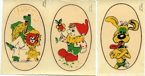 Это вкладыши немецкой жвачки, которая у нас не продавалась. Были крайне редки и офигенно дорого ценились! Как правило, они были уже изрядно потрёпаны, так как переходили из рук в руки как реликвия.