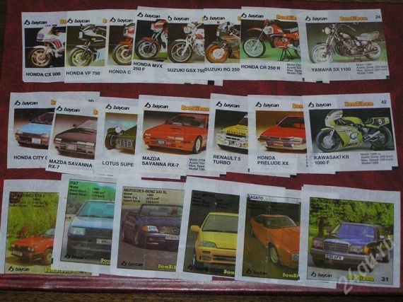 «BomBibom» — жвачка со вкладышами автомобильной тематики. Пожалуй, самая моя любимая, после «Turbo»: