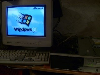 Там была уже установлена ОС Windows 95, но по умолчанию грузился любимый и знакомый DOS 7.0. Набрав команду «win.com» можно было загрузить винду, поиграться с ней и выйти :)