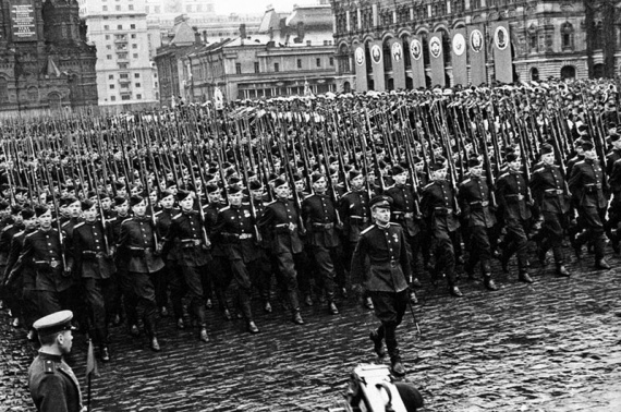 Затем торжественным маршем прошли части Московского гарнизона: сводный полк Наркомата обороны, военной академии, военные и суворовские училища, сводная конная бригада, артиллерийские, мотомеханизированные, воздушно-десантные и танковые части и подразделения.