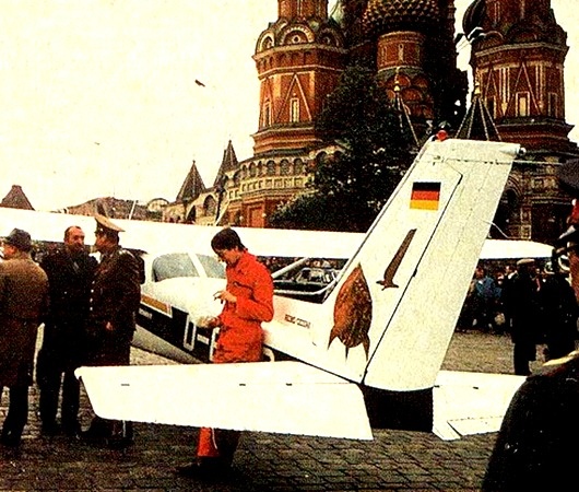 Мне очень понравилась версия о рекламном характере мероприятия. Оказывается, отец Матиаса Дитер Руст работал дилером «Цессны» в Западной Европе. К середине восьмидесятых объем продаж самолетов этой фирмы резко сократился, и, чтобы поднять интерес к марке, нужна была яркая рекламная акция.