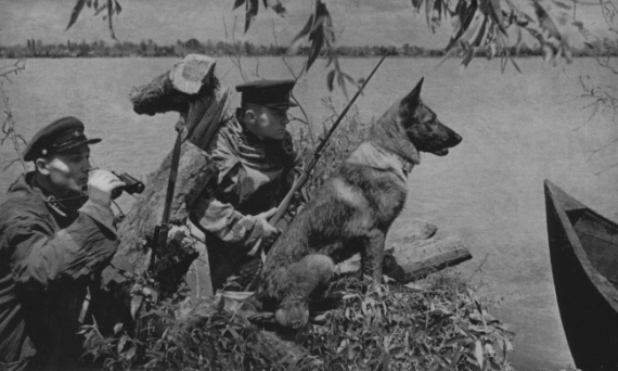 Советские пограничники в дозоре.