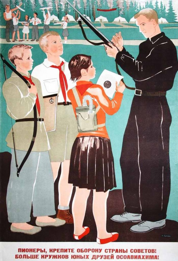 Пионеры, крепите оборону страны Советов! Больше кружков юных друзей ОСОАВИАХИМа! (1934 год)