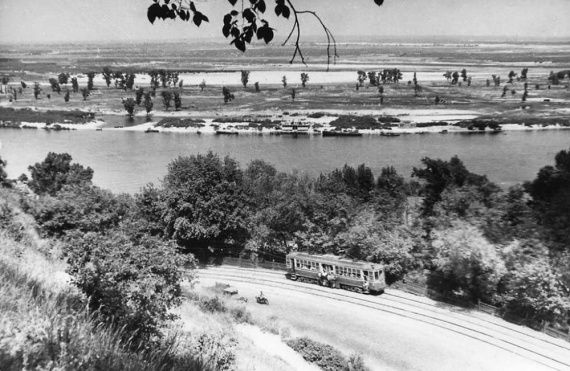 Послевоенное фото, на котором изображен существующий и по сей день 12-й трамвай, связывающий город с Пуща-Водицей.