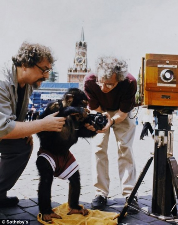 Фотографии Микки — циркового шимпанзе, которого Виталий Комар и Александр Меламид учили делать фотографии на Красной площади.