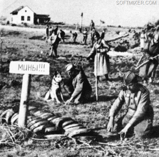 Во время Второй мировой войны разминировать объекты сапёрам активно помогали дрессированные собаки. Одна из них по кличке Джульбарс обнаружила при разминировании участков в европейских странах в последний год войны 7468 мин и более 150 снарядов. Незадолго до Парада Победы в Москве 24 июня Джульбарс получил ранение и не мог пройти в составе школы военных собак. Тогда Сталин приказал нести пса по Красной площади на своей шинели.