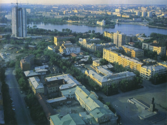 («Дом Советов» — это то, что потом стали называть обкомом партии, а теперь здание администрации Свердловской области. Кстати, на снимке он в левом углу, а не посередине. Но на самом деле на снимке два Дома Советов — как раз ближе к центру кадра находится так называемый Второй дом Советов — 11-этажная высотка и 4-этажное здание — 8 Марта,2)