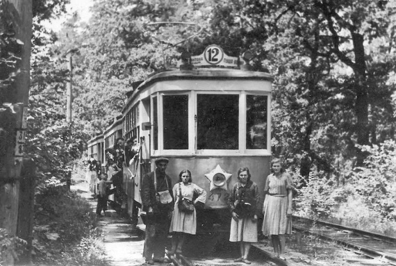 Трамвай №28 на улице Диагональной (проспект Ю. Гагарина), 1956 год