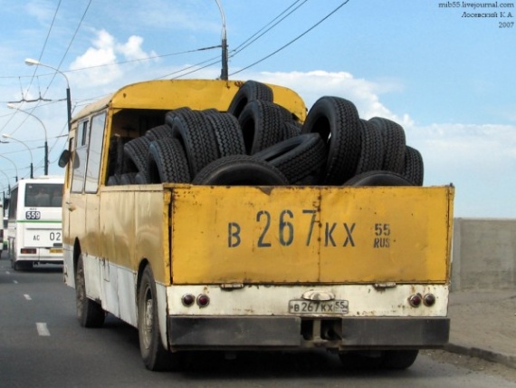 Вот одно из основных применений таких машин — доставка с ОШЗ новой резины для автобусов.