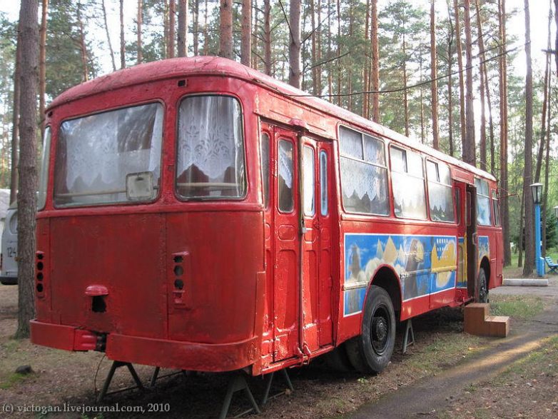 ЛиАЗ-677М в качестве агиткомнаты в детском лагере «Зорачка» на вдхр. Гать