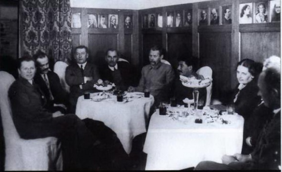 Однако эта кампания по экономии госсредств нисколько не коснулась членов Политбюро. Наоборот, с середины 1930-х годов для каждого из них был устапродуктов — 8 тыс. рублей в месяц. Собственно, моду в этом вопросе устанавливал Сталин. До тех пор пока в еде он был аскетом, ему подражали все остальные. Но после смерти жены долгие обеды Сталина с соратниками превратились в очень долгие, а сам вождь, как вспоминал Анастас Микоян, пристрастился к кулинарным экспериментам. «Он любил выдумывать и заказывать блюда, неизвестные нам. Например, стал заказывать поварам и постепенно совершенствовать одно блюдо — не то суп, не то второе. В большом котле смешивались баклажаны, помидоры, картошка, черный перец, лавровый лист, кусочки нежирного бараньего мяса. Это блюдо подавалось в горячем виде. Туда добавляли кинзу и другие травы. Сталин дал ему название „Арагви"».