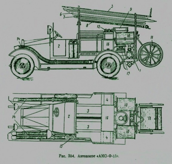 Так был устроен типовой «автомобиль насосно-рукавный» на шасси АМО-Ф-15.
