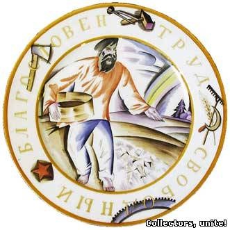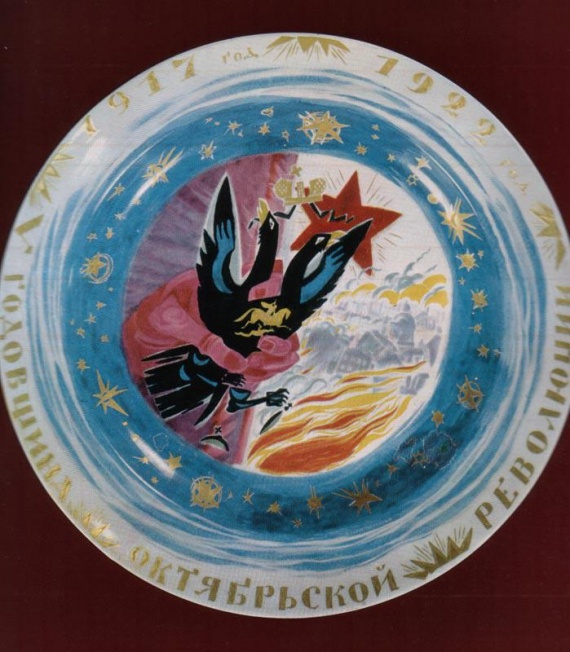 Блюдо к пятилетию Октябрьской революции. 1922 г. М. В. Лебедева.