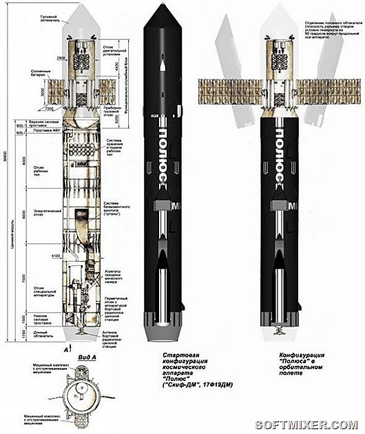 «Советы профинансировали две крупных программы научно-исследовательских и опытно-конструкторских разработок в конце 70-х и начале 80-х годов, нацеленных на противостояние воображаемым американским идеям противоракетной обороны», — говорит он. Две концепции слились в одну: Скиф — орбитальная лазерная «пушка» — и еще одно оружие под названием «Каскад», рассчитанное на уничтожение вражеских спутников ракетами, выстреливаемыми с другой орбитальной станции.