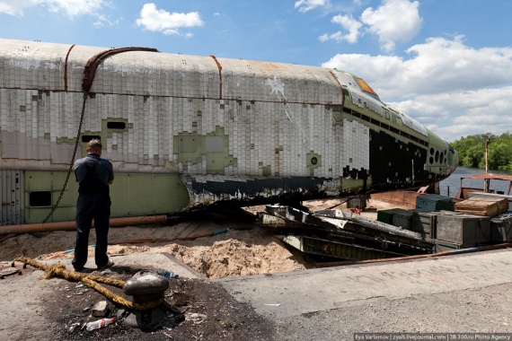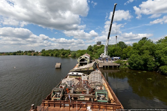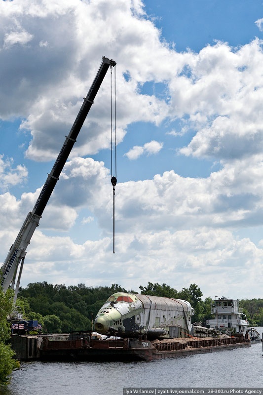 01. Фюзеляж корабля, его крылья, киль, шасси и прочие детали погрузили на баржу.