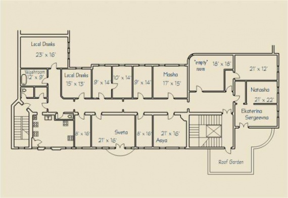 Но представьте на минутку, что вы лежите на диване, смотрите на потолок — а там лепнина, разделённая стеной на две части. Одна половина у вас, а другая — у соседей. В углу камин или нечто напоминающее печку с заложенным дымоходом.