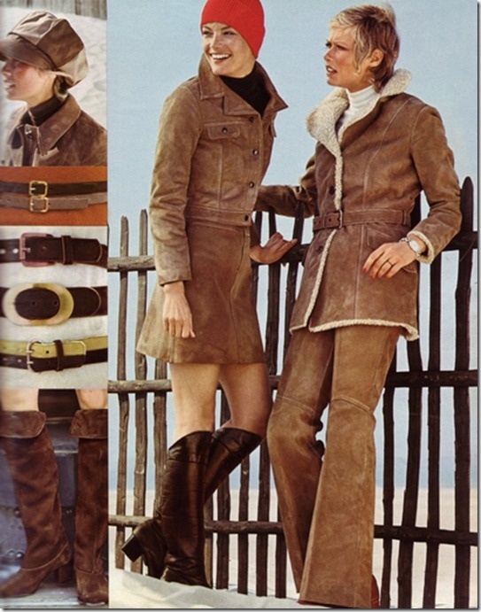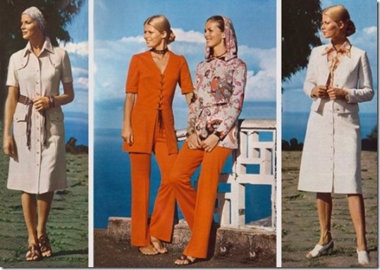 Мода для девушек 70-х годов в значительной степени зависела от разных стран. Крестьянские блузки отразились в отделке с воланами и воздушными рукавами. Связанные крючком свитера были популярны, взявшие свое начало из Испании, отсюда всеми любимые панчо.