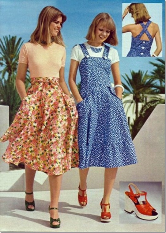 Мини-юбки были популярны среди девушек и подростков, либо в паре с блузкой или рубашкой. Юбку-клеш носили многие молодые девушки в начале — середине 1970-х г., а так же мини-платья в клетку или ромбовидным узором. Мини-юбки — это признаки тропических отпечатков и других экзотических моделей, которые напоминали о мечтах о далекой земли.