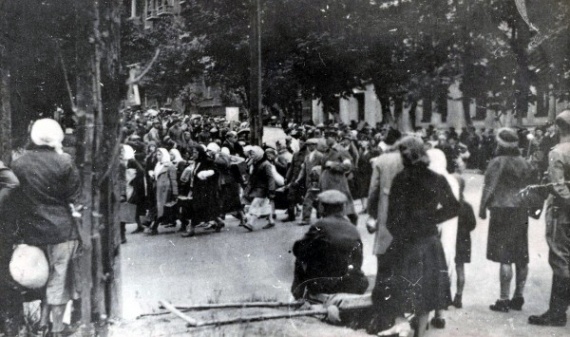 Киев. Колонна женщин-остарбайтеров, собранных для отправки в Германию.