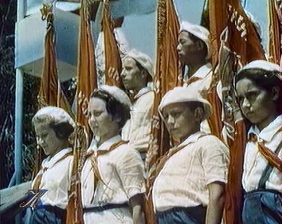 «Все пионеры Родины великой заботой партии всегда окружены», звучат звонкие голоса: