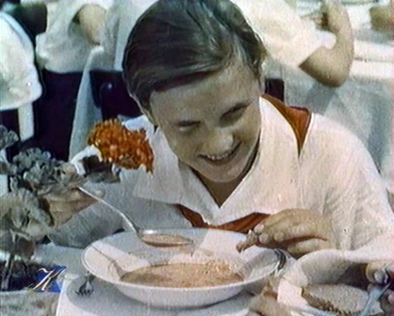«В Артеке каждый может заниматься своим любимым делом», сообщает голос за кадром: