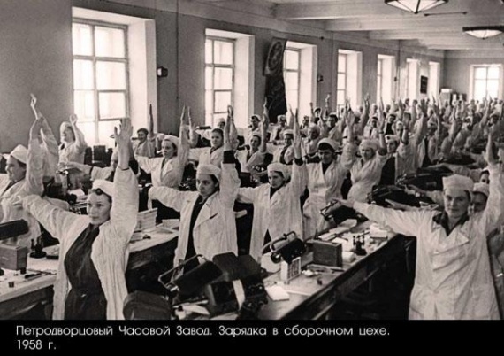 Советские граждане все как один делали зарядку. Даже на производстве.