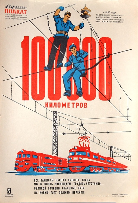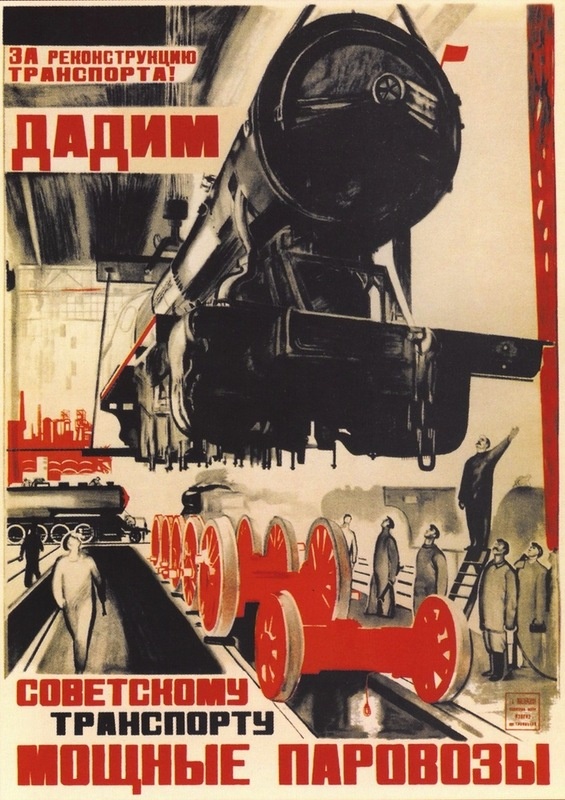 Словами всё это сложно передать, но плакаты, возможно, помогут дух тех времён, когда стальные магистрали решали всё.