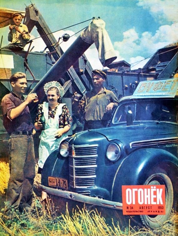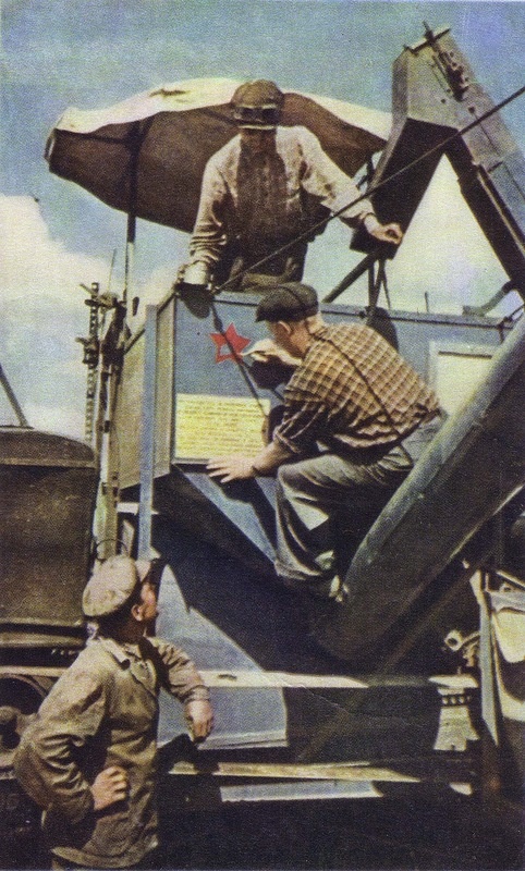 Уникальные цветные снимки из журнала «Огонёк» за август 1953 г. — репортаж об уборочной на Кубани. Конечно, качество не слайдовое, но дух времени чувствуешь.