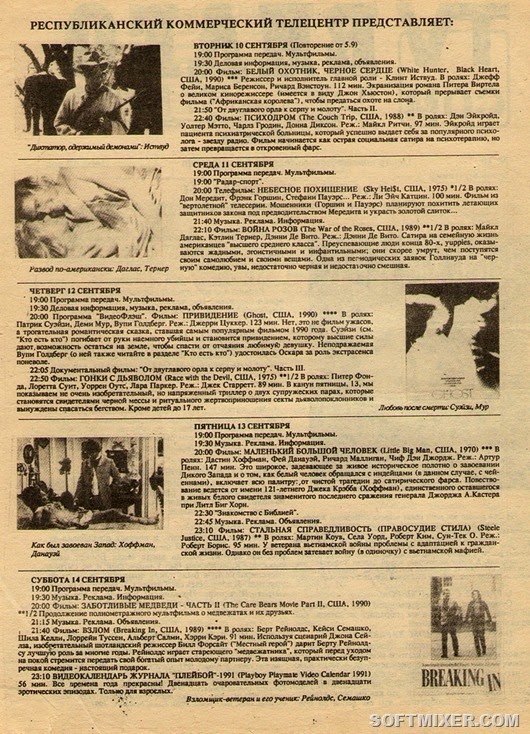 Конечно, делалось это не безвозмездно. «Подписка» на кабельное стоила денег. Жильцы даже приобретали отдельную программу кабельного ТВ, отпечатанную на пишущей машинке.