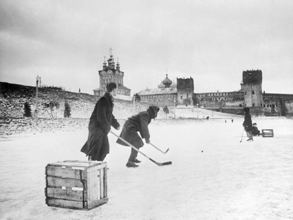 9. Еще одно повальное увлечение советских граждан – хоккей! Вот, например, импровизированный турнир на Новодевичьем пруду в Москве, 1961 год.