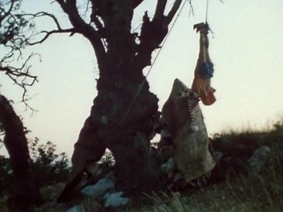 — Отдельная история приключилась при съемках сцены, когда лиса и кот за ноги подвешивают Буратино к дереву. Мама Димы категорически не желала, чтобы сын болтался вниз головой: «Нужен дублер!» В конце концов ее обвели вокруг пальца. Нечаев позже вспоминал: «Я подозвал Димку и говорю: «Нужно что-то делать!» Он: «Понял!» — и начинает ныть: «Есть хочу, не могу! Живот болит!» Пока мама ездила в магазин, мы подвесили Буратино».