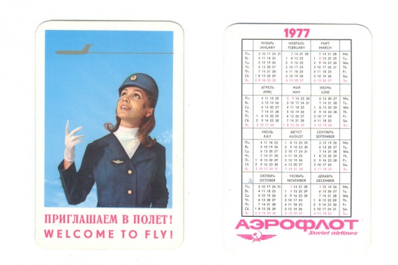Глядя на календари с рекламой «Аэрофлота», вспоминается Высоцкий: «И вот прошла вся в синем стюардесса, как принцесса, надёжная, как весь гражданский флот.»