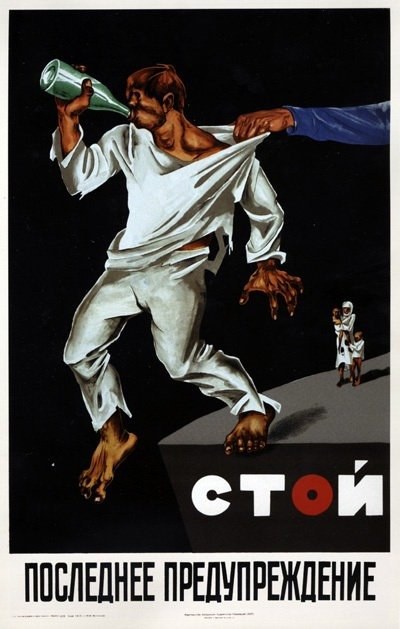 Но помимо кардинальных мер в борьбе с алкоголизмом, власти активно продвигали пропаганду здорового образа жизни и высмеивали алкоголиков. Многочисленные плакаты были одним из главных оружием в борьбе с алкоголем.