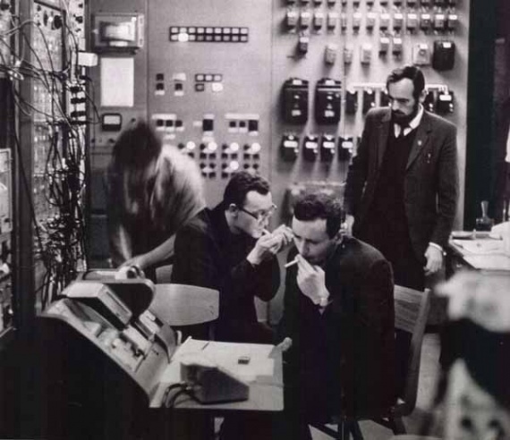 Советские инженеры нервно курят. Еще бы — они отстали от цивилизованного мира на сто лет. Но, к счастью, их документы уже лежат в ОВИР-е — и скоро они вольются в счастливую семью западных народов.