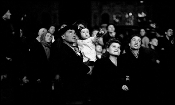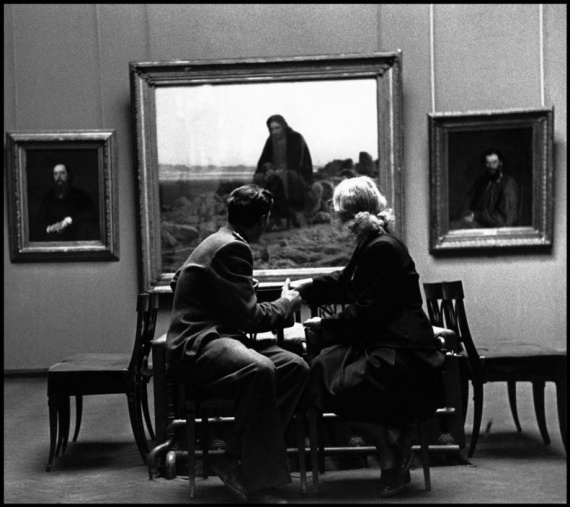 «Сейчас поздняя ночь, и я сижу посреди ужасно мрачного гостиничного номера, окруженный ста девяноста миллионами русских, четырьмя фотокамерами и парой дюжин проявленных, но больше непроявленных плёнок, а также одним спящим Стейнбеком, и счастливым я себя совсем не чувствую. Сто девяносто миллионов русских против меня. У них нет стихийных митингов на улицах, они не занимаются свободной любовью, они не любят ничего нового, они очень правоверны, высоконравственны и трудолюбивы, а для фотографа это так же скучно, как снимать яблочный пирог. Ещё им нравится русский образ жизни и не нравится фотографироваться. Все мои четыре фотокамеры, привыкшие к войнам и революциям, испытывают чувство отвращения, и каждый раз, когда я щёлкаю ими, с ними обязательно что-нибудь происходит. И ещё вместо одного Стейнбека у меня их целых три».