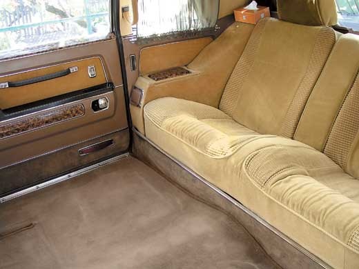 Подголовники и подлокотники комфортабельных кресел обтягивали натуральной шерстью или кожей преимущественно английской марки Connolly – поставщика Aston Martin, Bentley и Rolls-Royce. Средний ряд сидений был откидным и при необходимости легко складывался в ниши в спинках передних кресел. Существовало два варианта обивки салона: бежевый и темно-зеленый.