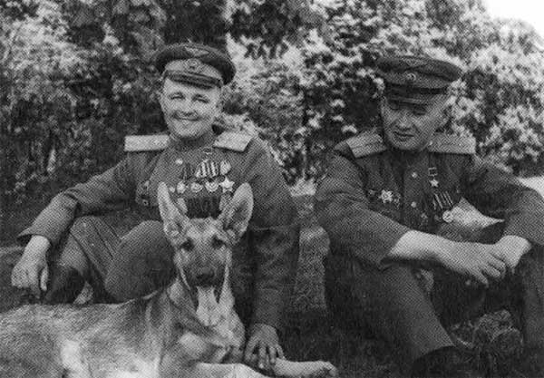 В самый критический момент нескончаемых немецких атак близ села Легедзино, когда он почувствовал, что больше не устоять… послал в атаку собак. Старожилы села вспоминали истошные крики и лай собак. Зрелище было страшное: 150 обученных, полуголодных овчарок, против поливающих их автоматным огнем фашистов. Овчарки впивались фашистам в глотки даже в предсмертных судорогах. Противник отступил, но на подмогу подошли танки. Покусанные немецкие пехотинцы взбирались на броню танков и расстреливали бедных псов.