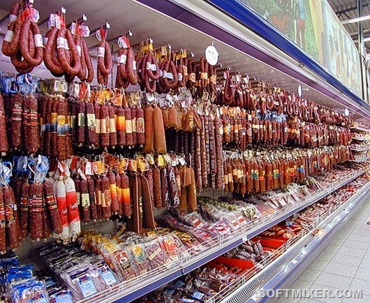 Вот тогда-то и хлынул народ из нищей России в благополучные страны за налаженной жизнью, за полными прилавками, за хорошей колбасой. Ибо отечественную колбасу стали обвинять во всех грехах — и туалетную бумагу в нее, якобы, добавляют, и пуговицы/человеческие ногти/крысиные хвосты и прочие ужасы в ней находят, и вообще делают неизвестно из чего.